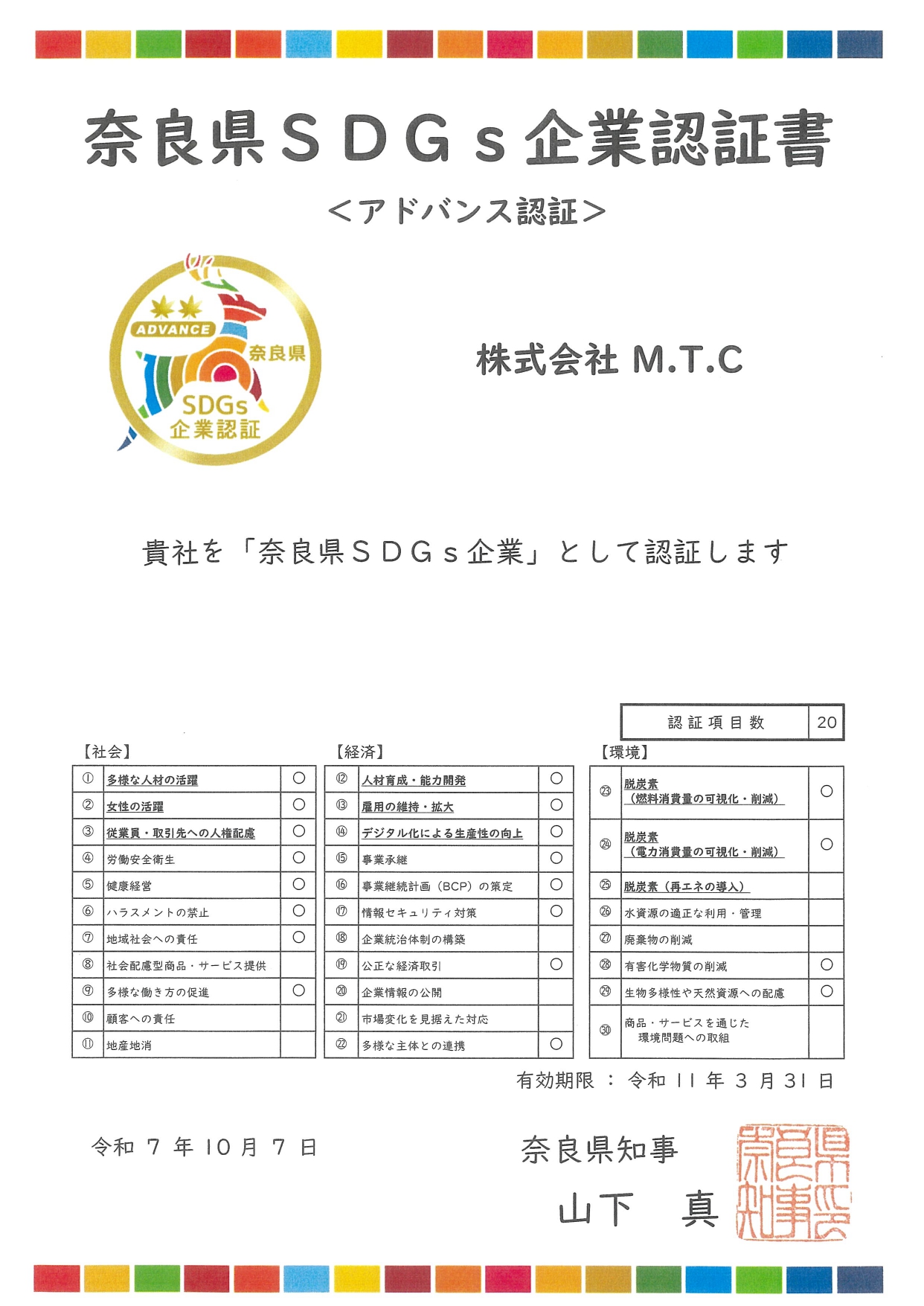 2016年9月1日制定 株式会社M.T.C代表取締役 森 久次